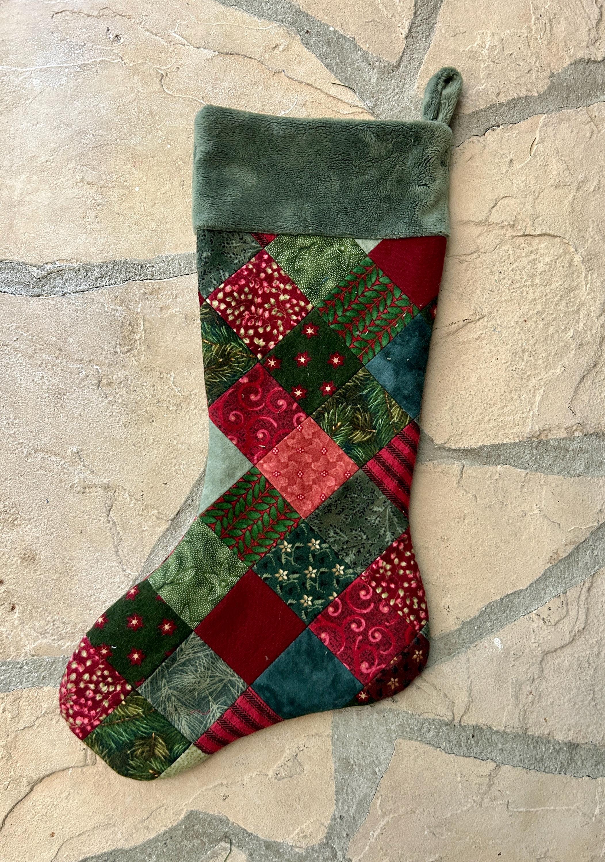 Whether you're decorating your own home or looking for a thoughtful handmade gift, this patchwork stocking adds a touch of cozy, vintage-inspired cheer to any space.