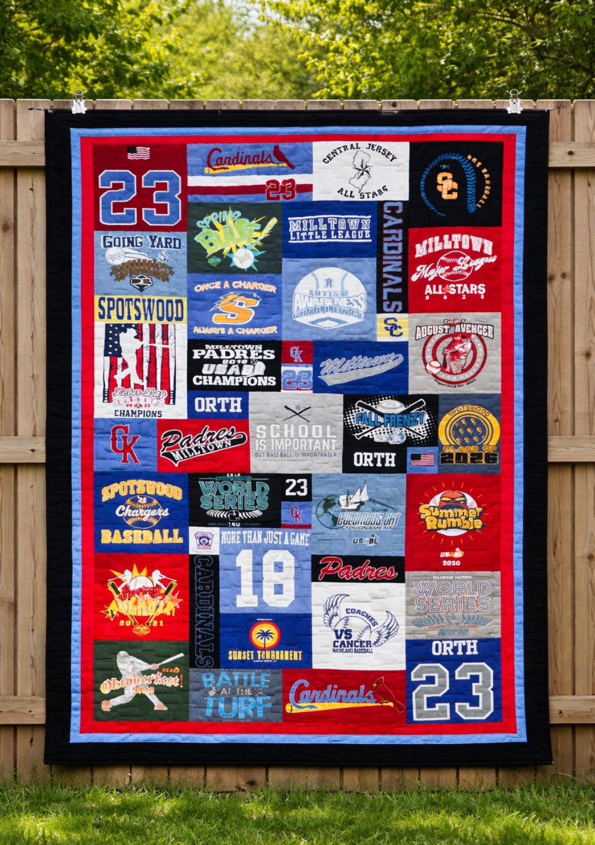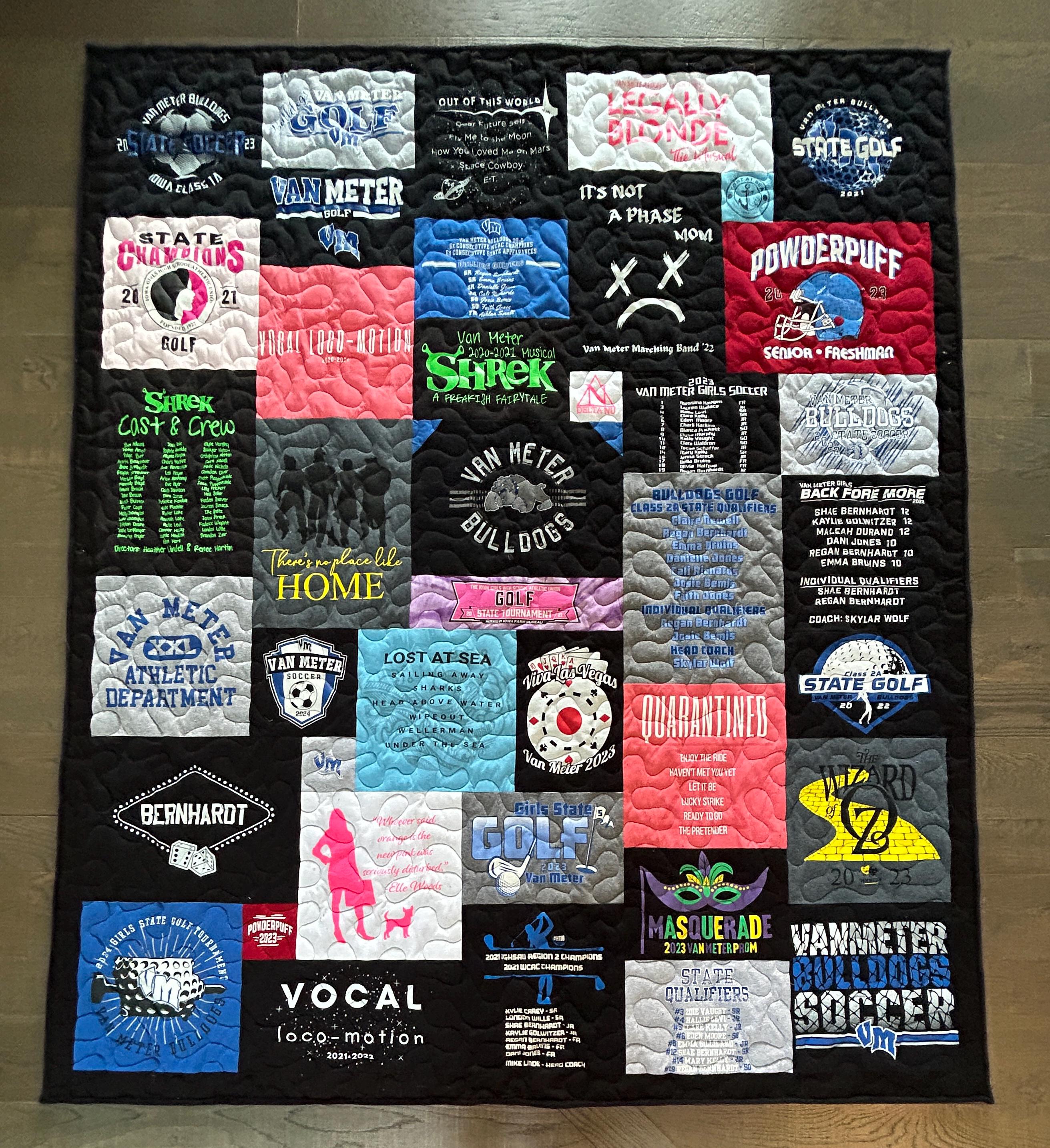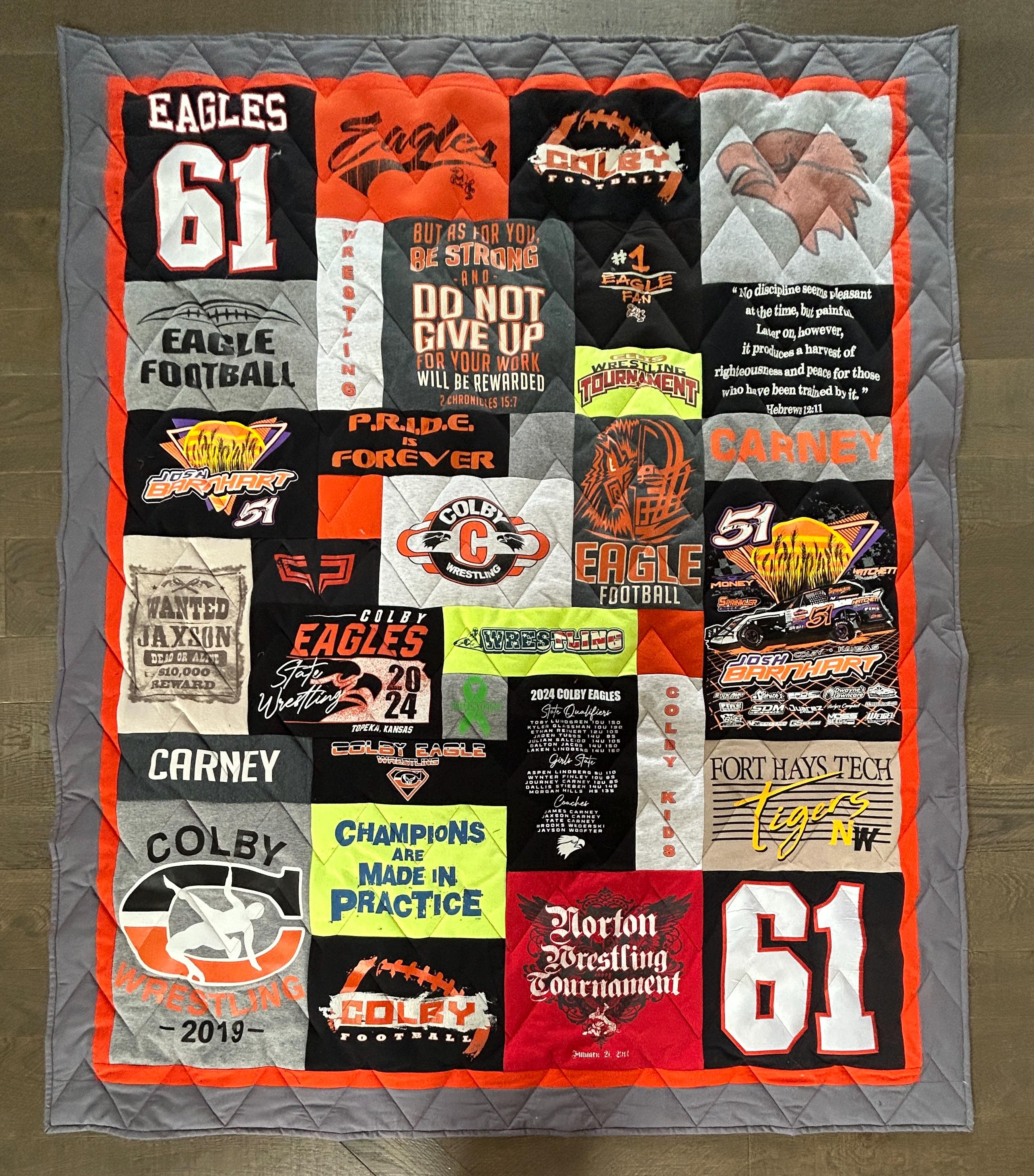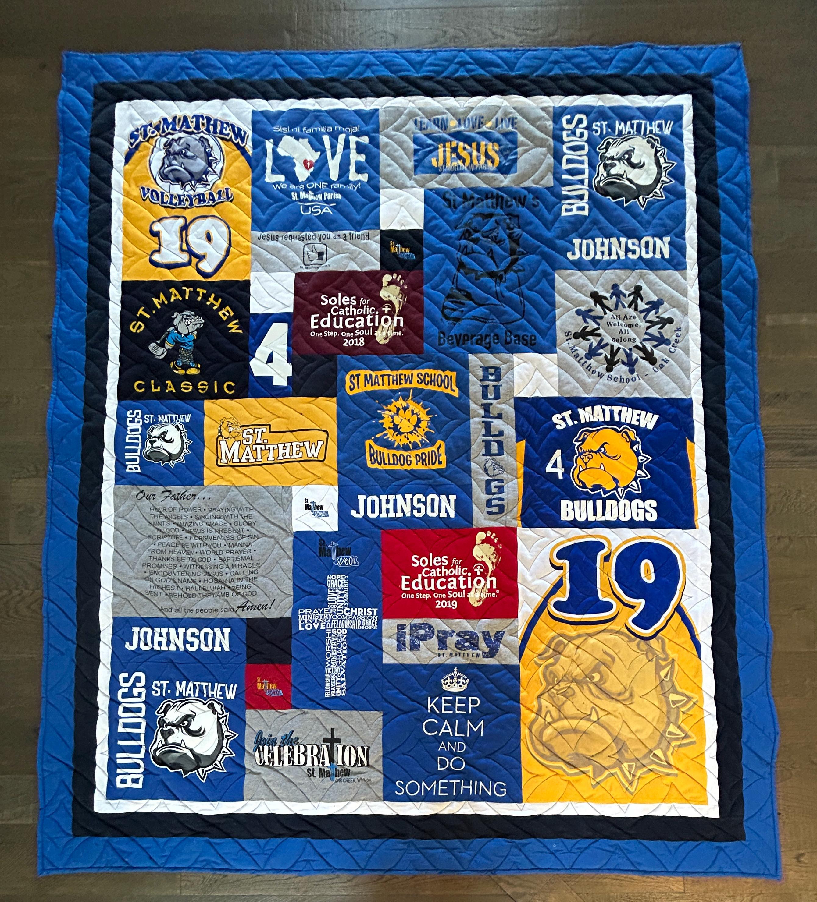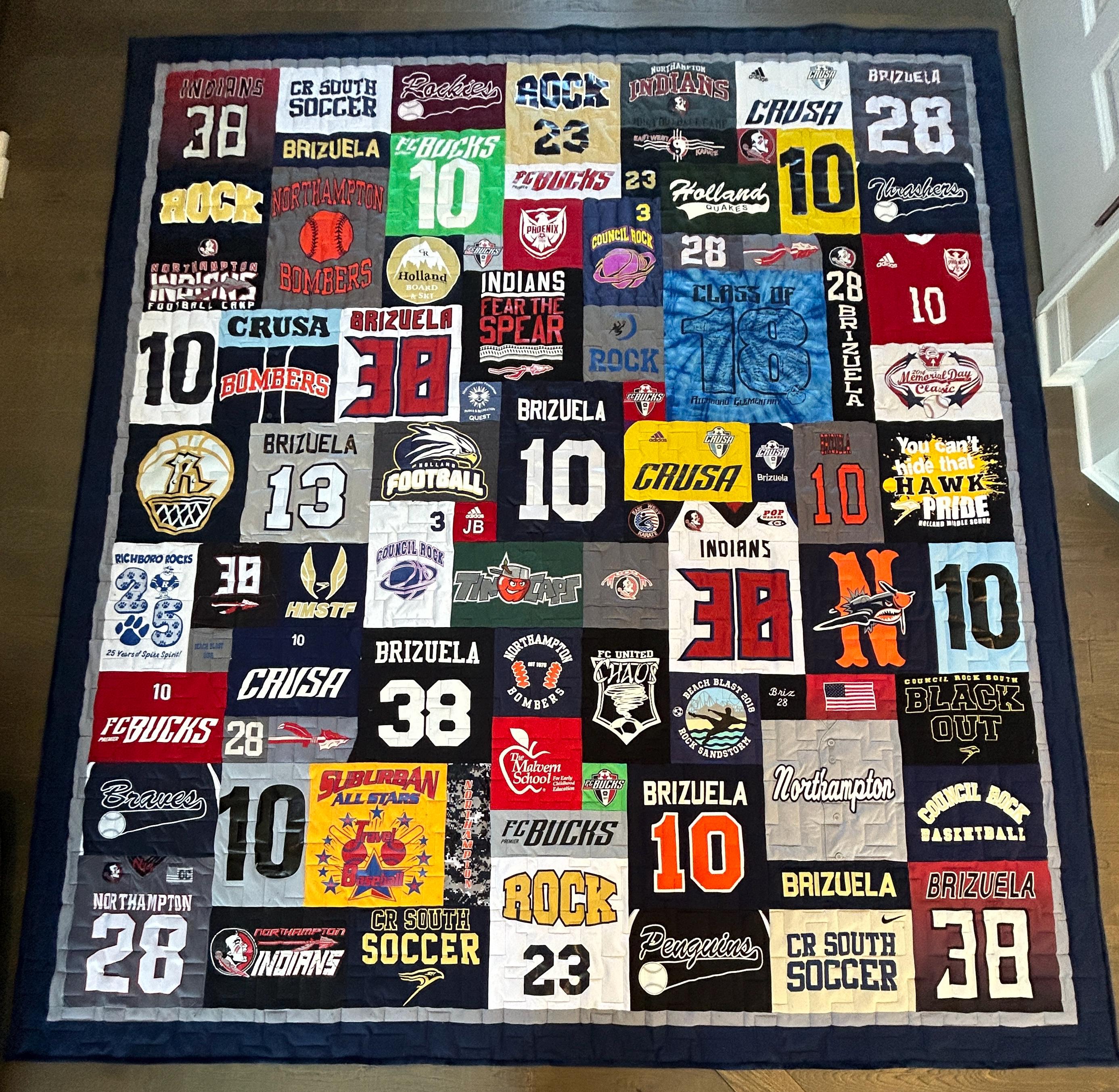 Each quilt is thoughtfully handcrafted using your shirts preserving everything from school spirit and extracurricular achievements to personal memories and milestones.